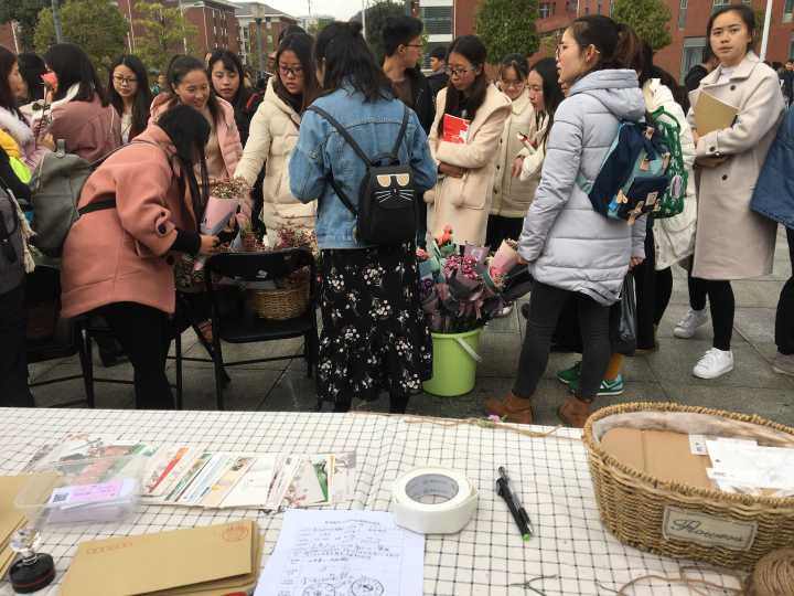 五四广场各种各样的花朵为女生节增强了些许浪漫的气氛,男生们也尽显绅士风度。工作人员给同学和老师们送花时,祝福的语言也为她们带去温暖。当天的天气并不好,寒风凌冽,但全场的气氛却异常温馨,所有参与活动的同学都被现场工作人员的热情包裹着。
