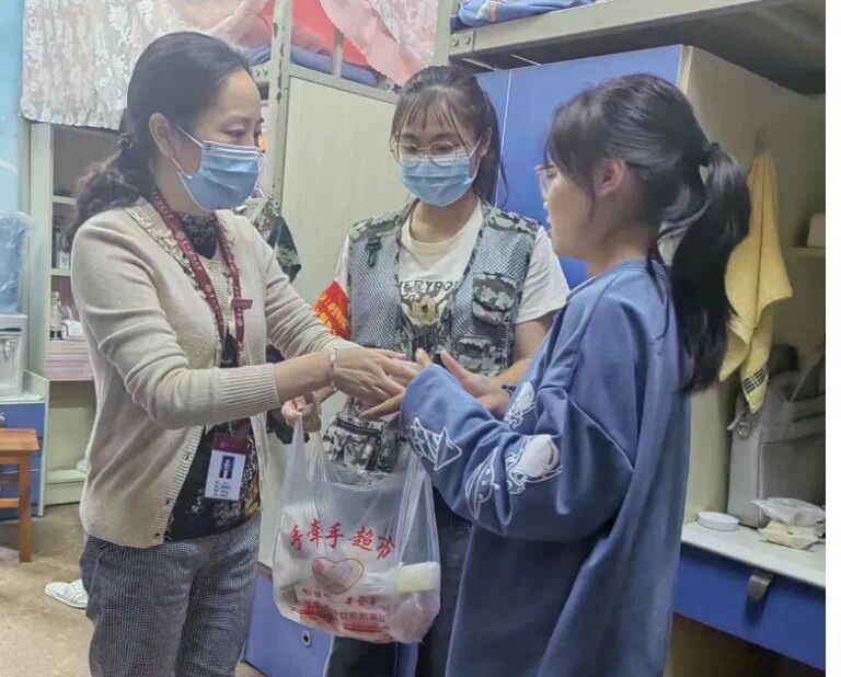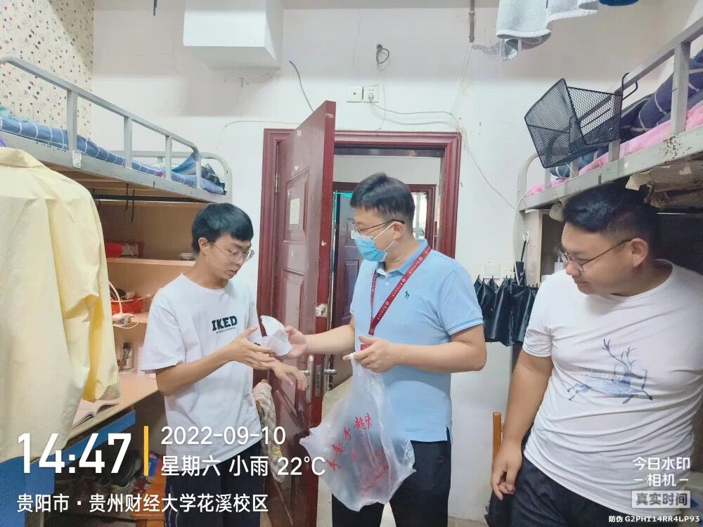 9月10日中午12:30,williamhill中文官网“兵锋”校园志愿服务队的队员们到达五四广场,领取并清点好公司1271名同学的月饼,队员们分工明确,井然有序的将月饼送到各自所负责的寝室楼栋。下午2:30,williamhill中文官网党委书记杨阳、副书记何瑞,带领“兵锋”志愿服务队队员走进员工寝室,将月饼等慰问物资送同学们手中,并对同学们致以节日的问候。杨阳与同学们亲切交谈,她表示,同学们坚决服从公司疫情管理规定,积极配合公司完成多轮的核酸、抗原检测,与公司共同抗疫,守护平安,这体现了我们新时代的“工商精神”,值得我们赞赏和肯定,也为我们2022级新同学上了一堂生动的“思政课”。希望同学们克服暂时的困难,继续服从公司统一部署安排,坚持上好网课,出门戴口罩,回家要洗手,全院上下一心,凝心聚力,竭尽全力打赢这场疫情防控阻击战。