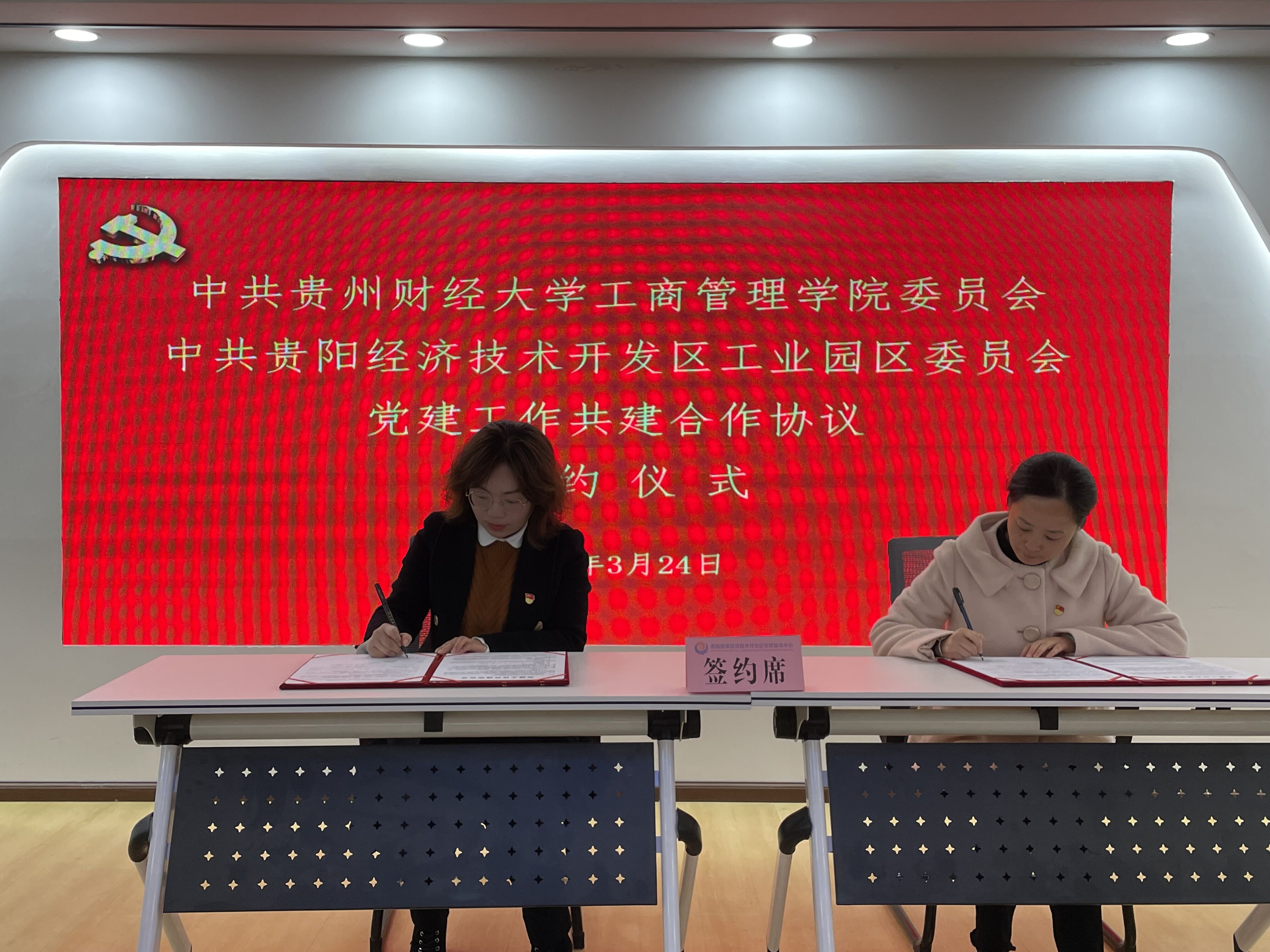 为了贯彻落实新国发2号文件精神,勇于在实施“强省会”战略中担当使命,为了全力落实williamhill中文官网与贵阳经济技术开发区管理委员会的战略合作协议要求,3月24日上午,williamhill中文官网党委与贵阳经开区园区党委签署了结对共建协议。会议由经开区园区党委委员、园区办副主任(主持工作)张蕴亮主持。williamhill中文官网领导班子、专家团队以及贵阳经开区组织人事部副部长吴晓梅、贵阳经开区9家企业负责人等参加。