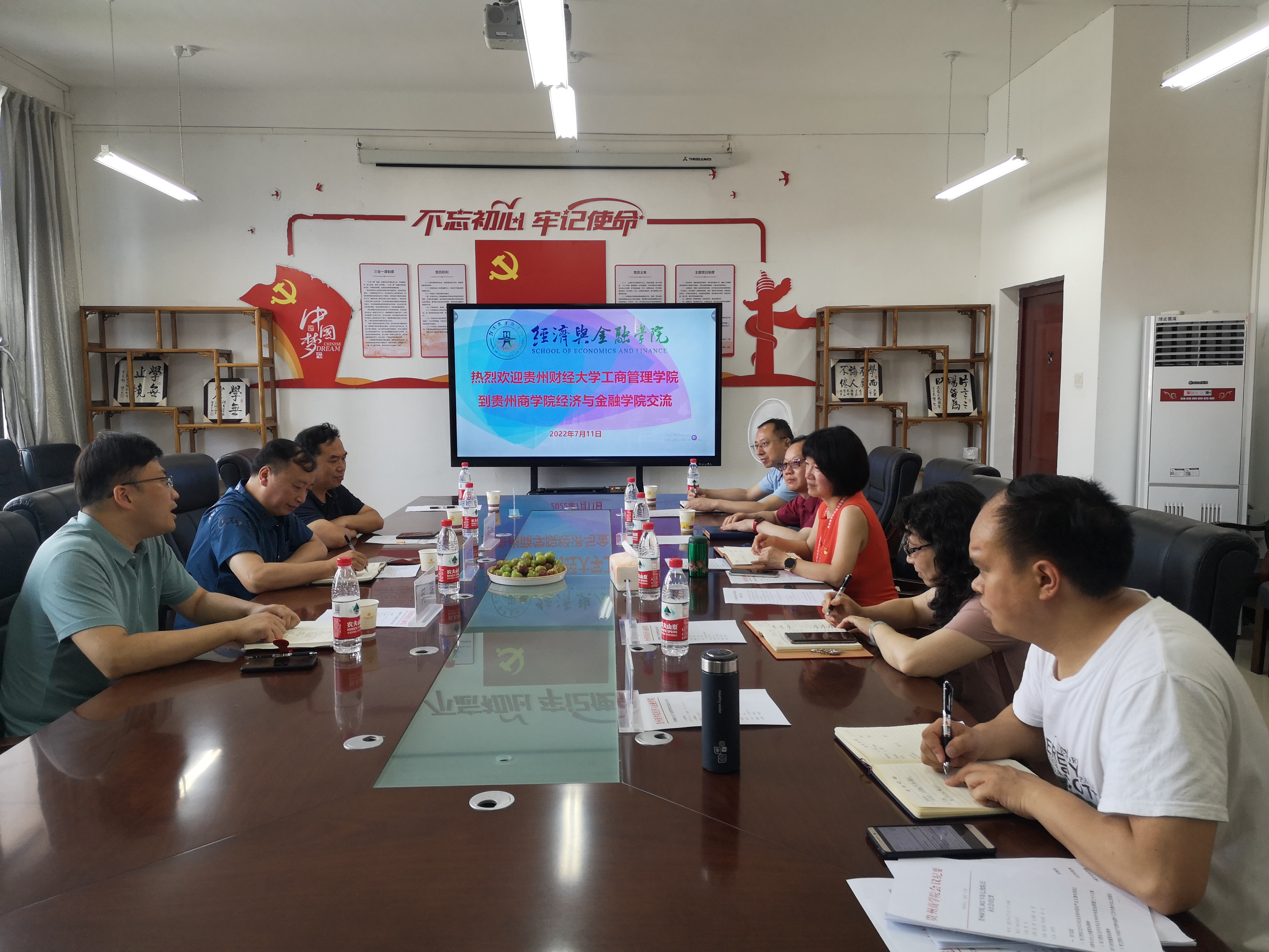 2022年7月11日下午,工商管理公司副经理刘良灿、副经理胡北明、副书记何瑞和毕业班辅导员崔桂美赴贵州商公司经济与金融公司开展结对共建交流座谈。贵州商公司经济与金融公司党委书记庞郁华、党委副书记付茂业、经理曾绍伦、副经理董耀武、副经理段登辉和辅导员代表参加座谈。会议由庞郁华主持。