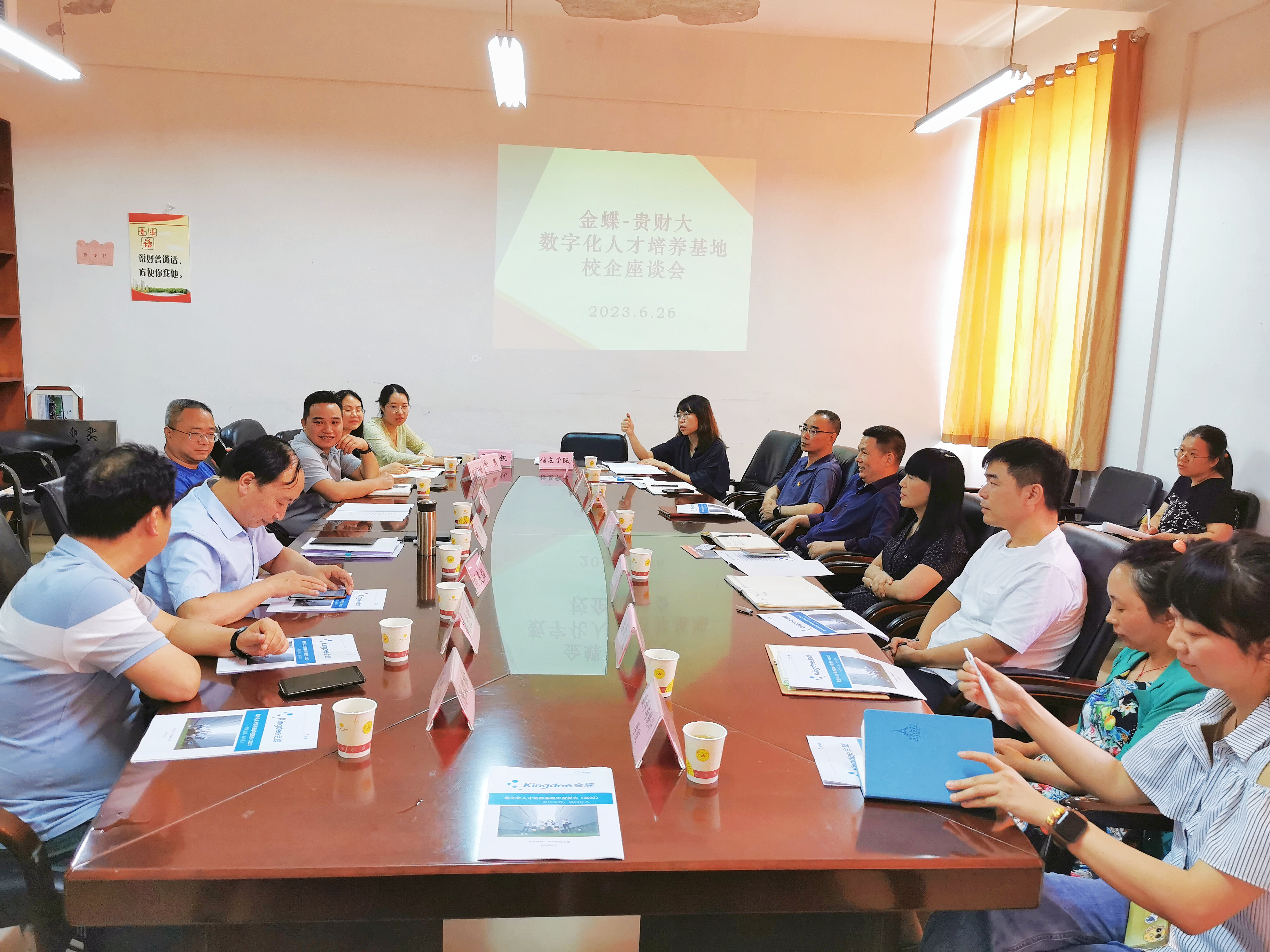 为进一步深化合作,提升公司与金蝶软件(中国)有限公司共建的数字化人才基地培养质量,拓展数字化人才基地人才培养的深度、广度、亮度,2023年6月26日,公司党委委员、副董事长彭洁在williamhill中文官网进行调研,金蝶精一信息科技服务有限公司黔鄂区经理莫才龙,公司教务处、大数据统计公司、大数据应用与经济公司、会计公司、数学与统计公司、法公司等部门负责人参加交流座谈。座谈会由williamhill中文官网副经理刘良灿主持。