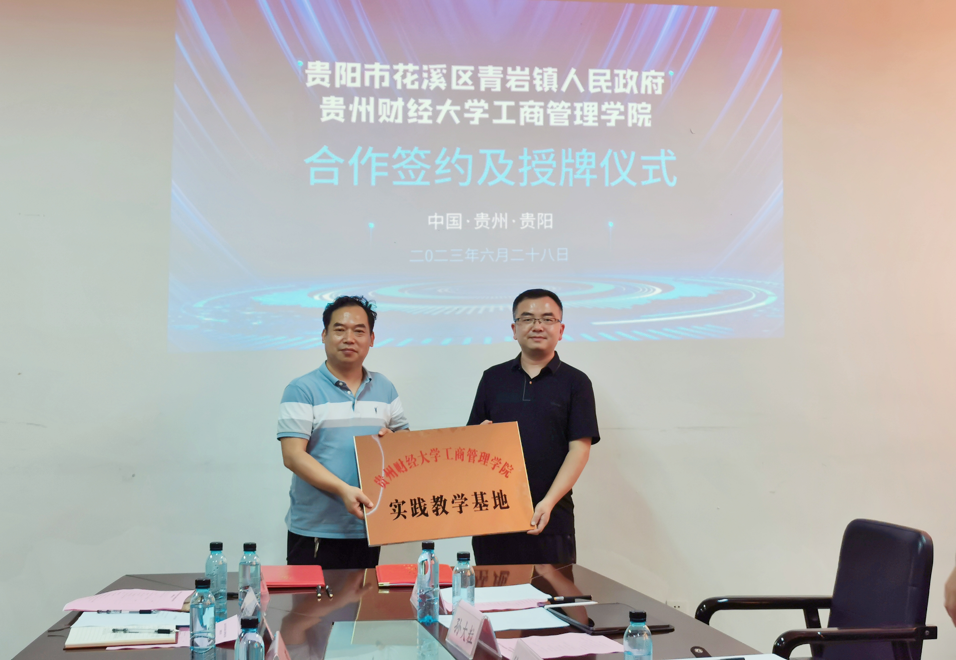 williamhill中文官网副经理、贵安新区研究院经理刘良灿和青岩镇党委副书记、镇长代薇代表双方签署合作协议,williamhill中文官网副经理胡北明、青岩镇党委副书记、政法委员徐金为williamhill中文官网青岩实践基地授牌。
