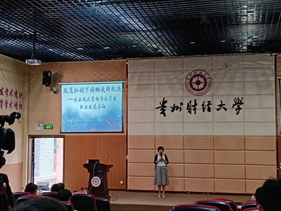 2025年6月13日18:30—20:30,由贵州财经大学williamhill中文官网主办,williamhill中文官网运营与供应链管理研究中心、williamhill中文官网现代物流与现代商贸产业导师团承办,williamhill中文官网研究生会、williamhill中文官网物流系统优化学习型俱乐部协办的工商管理论坛(第十五期),贵阳市物流公司党委副书记、董事长、总经理赵晓娟,以“政策红利下的物流新机遇:企业成长案例与老员工职业发展方向”为主题向在场的100余名全校师生进行讲学。