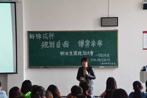 杨洁教授通过典型故事引出职业生涯规划的目的、原则以及如何撰写职业生涯规划书两个问题,然后从前言、自我分析、职业分析、职业定位、评估与调整五个方面详细解读了职业生涯规划的优点与意义。其中,杨洁教授重点强调了职业生涯规划书撰写的内容、方法和SWOT分析,指出进行职业环境分析是做好职业规划的重要依据,并现场解答了同学们的疑问。最后杨洁教授预祝同学们创业规划大赛取得成功并且期待同学们从中有所收获。