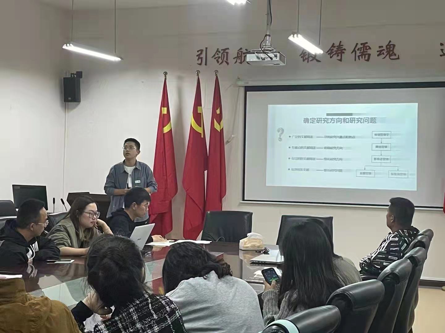 周正围绕论文“写什么”“怎么写”“写给谁”“怎么斗”四个方面讲述了论文写作和投稿的思路、方法等,分享了自己在学术训练中的感悟。许浩然结合他的毕业论文创作思路,谈了他的科研过程,从确定研究方向与研究问题、构建研究模型以及做系统化的研究三个方面深入浅出地向同学们阐述了如何作文。