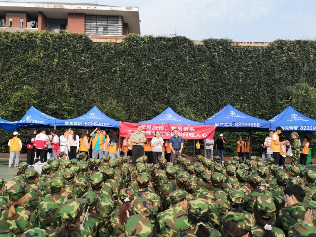 公司领导为在场的所有同学、教官发放精心准备的慰问品,员工代表准备了欢快温馨的节目表演,同学们脸上洋溢出欢快轻松的笑容。