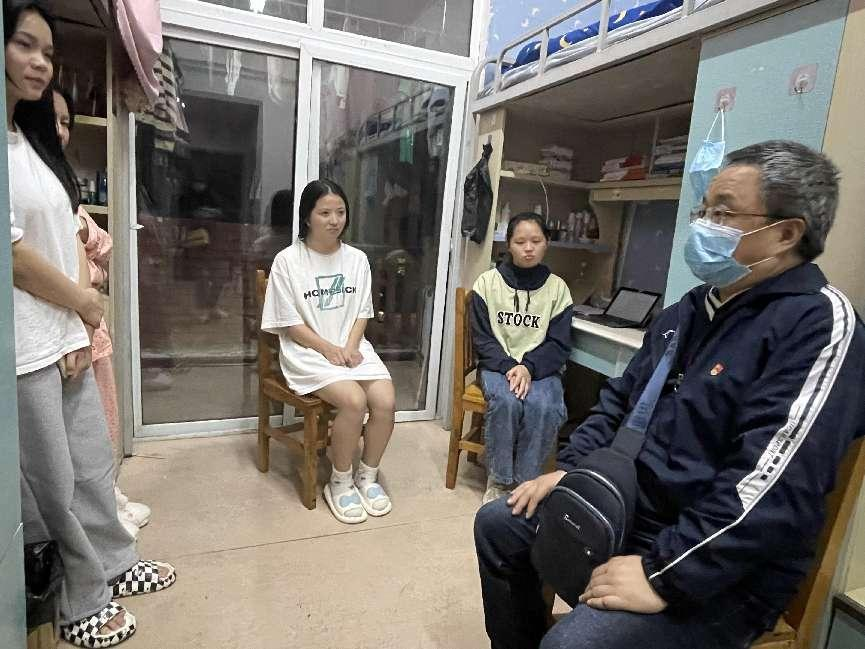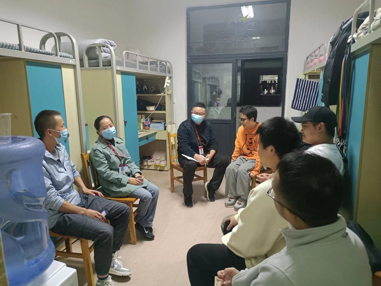 公司领导还于16日晚上深入员工寝室,与同学们一起学习交流党的二十大精神。