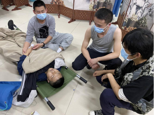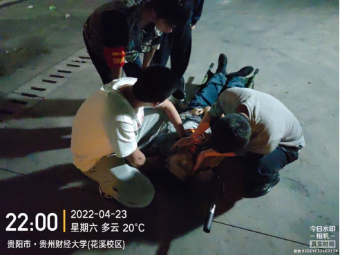 4月23日晚,公司“兵锋”校园志愿服务队第六小组组长林睿带领组员(徐兴杰,曾海星,杨明山)对公司员工宿舍樱花苑三栋进行巡查,无异常情况后,21时29分返回途中行至笃行楼B栋时,遇1名因喝醉酒的员工躺在草坪中,林睿上前查看情况,该醉酒员工已无法行走,并且不停呕吐。随后组长林睿迅速反应,和徐兴杰跑回崇德楼拿担架,途中电话告知队长陈勇现场情况并提出支援请求。陈勇得知情况后,立即与小组长刘汉羽一同赶往现场。