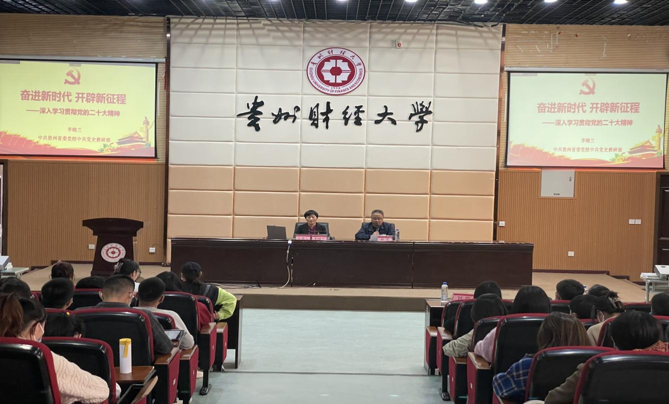 11月8日,williamhill中文官网在崇德楼报告厅开展新时代学习大讲堂暨深入学习贯彻党的二十大精神专题讲座。中共贵州省委党校中共党史教研部副主任、教授、研究生导师李晓兰以《奋进新时代 开辟新征程——深入学习贯彻党的二十大精神》为题,为williamhill中文官网及大数据统计公司全体党员作报告。此次讲座采用“线上+线下”讲授的形式开展,由williamhill中文官网党委常务副书记、正处级专职组织员崔军主持。