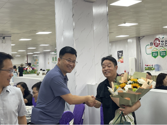 刘良灿进行了总结发言,首先对组织这次活动的老师和同学们表示感谢,并借此机会祝老师和同学们双节快乐,阖家团圆幸福。随后,公司对退休教师欧阳俊进行了慰问,送上了美丽的鲜花和精美的礼品。