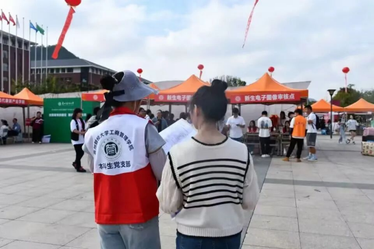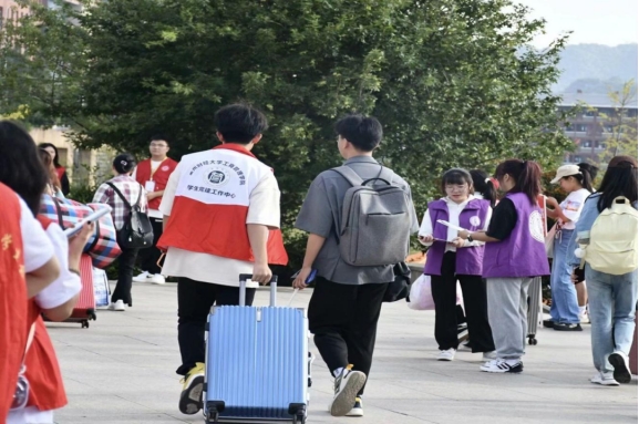 员工党建工作中心的工作人员一早便到迎新场地做准备工作,32名志愿者也陆续到场有序地开展迎新服务。新生迎着朝阳踏入校园,各党支部的党员志愿者热情地从小萌新手中接过行李,带着他们走报道流程、熟悉校园环境、寻找寝室,热心解答他们的疑问,让初进校园的新生们感受到学长学姐们的贴心、暖心、用心,也让陪同来校的家长们感到了放心。