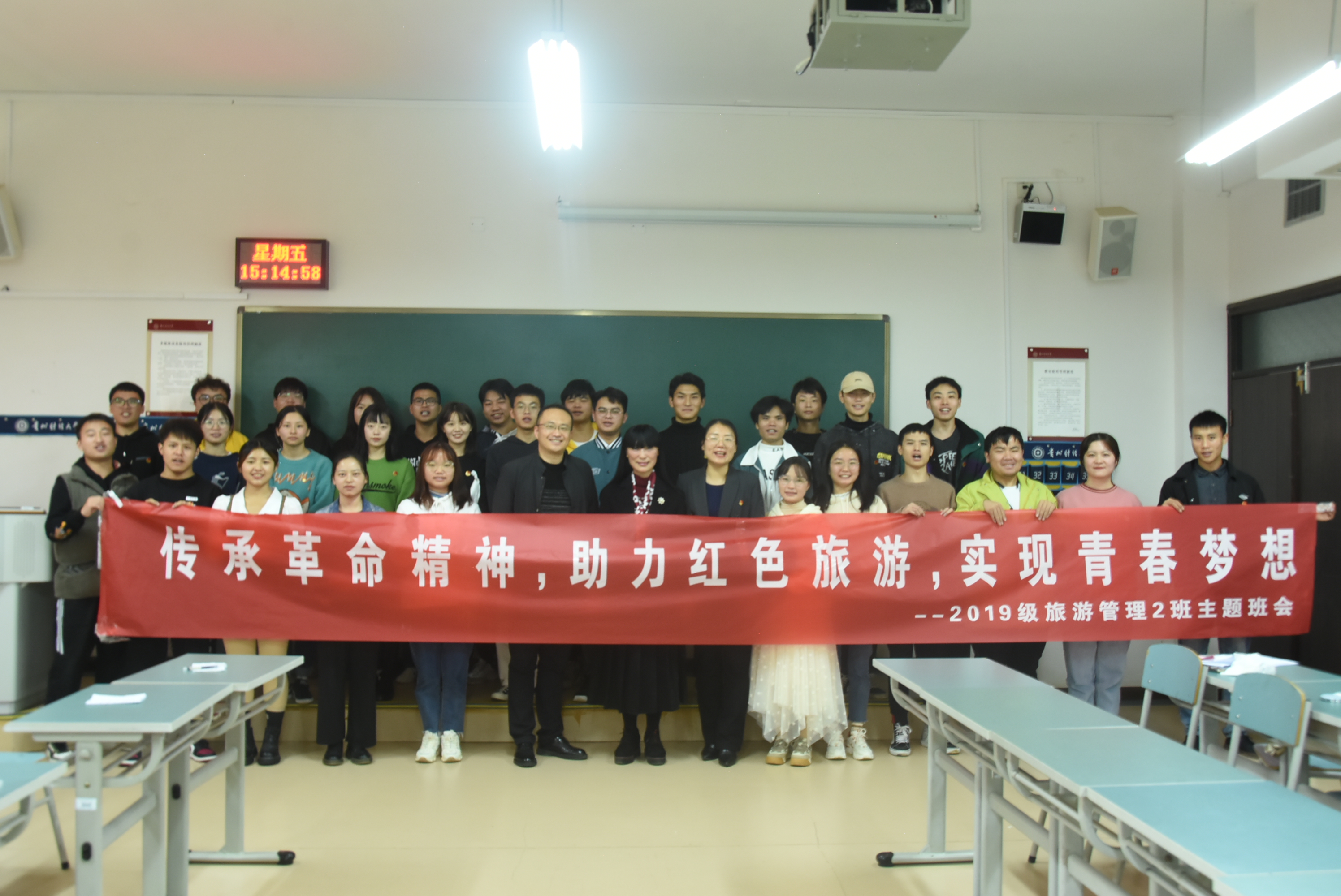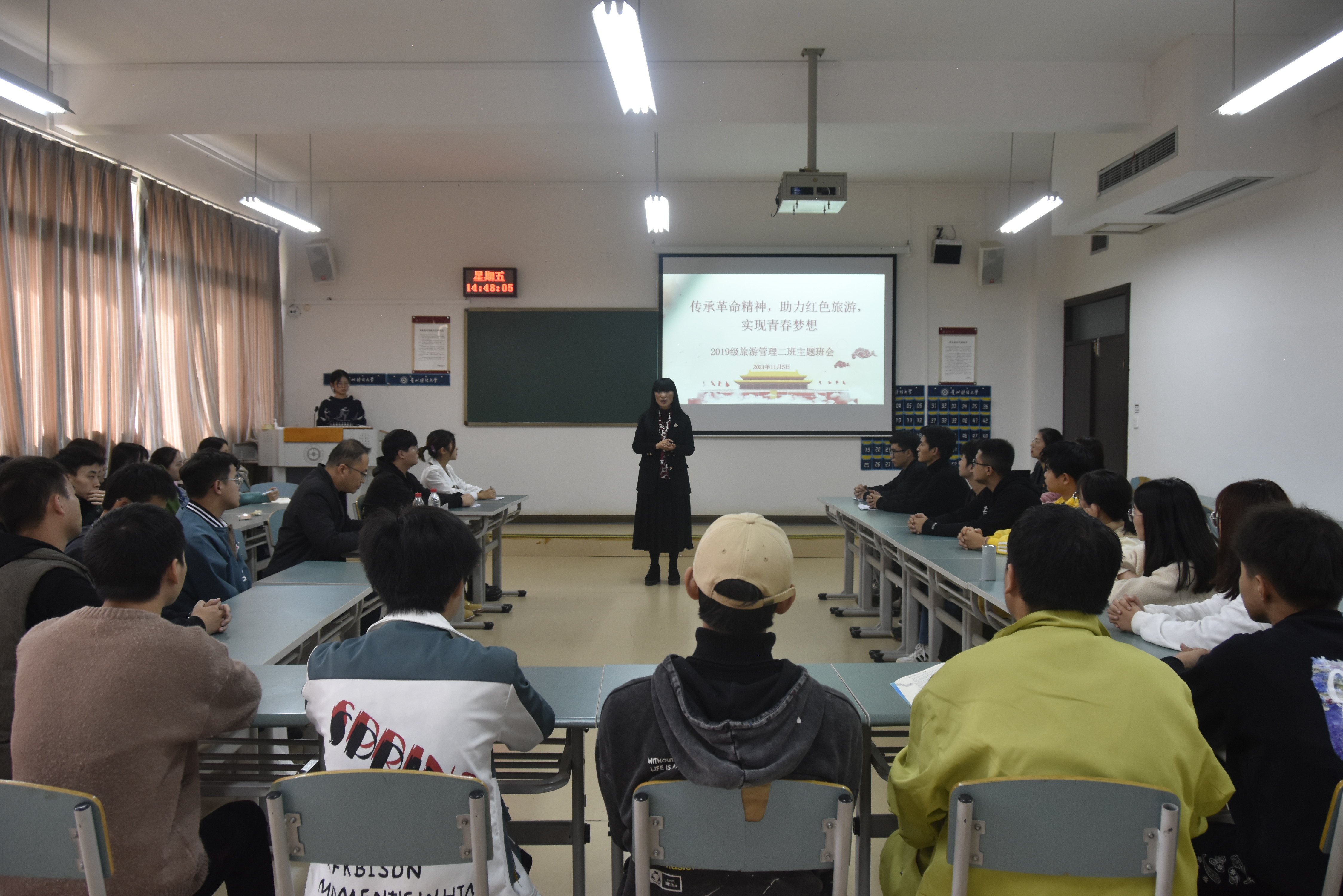 11月5日下午,公司党委委员、副董事长彭洁到williamhill中文官网参加了2019级旅游管理2班“传承革命精神,助力红色旅游,实现青春梦想”的主题班会,并走访了员工寝室。参加活动的有williamhill中文官网党委副书记何瑞、员工科负责人蒋小芳老师。