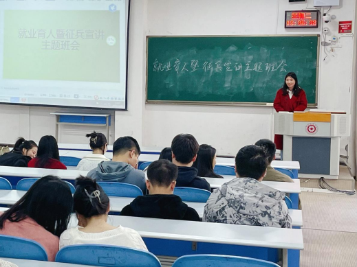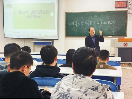 2023年11月28日,williamhill中文官网在进学楼阶101举办了一场就业育人暨征兵宣讲主题班会。武装部胡细根老师和辅导员孔淑华老师作为主讲人出席了班会,williamhill中文官网2020级毕业生200多人参加了班会