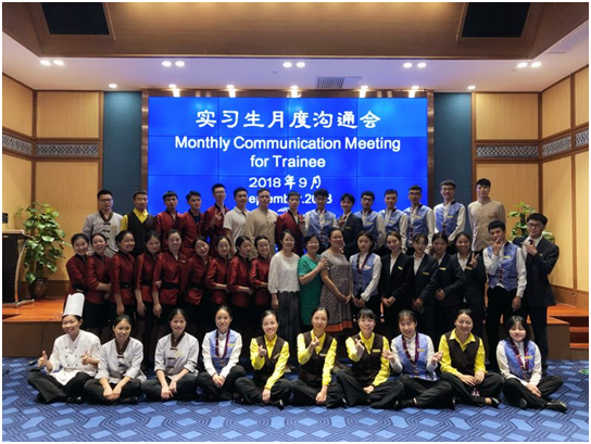 2018年9月1号,公司指导老师吴倩、谢飞前往贵阳群升豪生酒店出席实习生月度总结沟通会。通过老师们与同学们的细致交流与探讨,员工积极发言,分享自己的实习感悟 。他们表示,通过在酒店的实习,不但增长了见识,还在实践中掌握了很多服务技能以及人际关系的处理技巧。同时,不仅分享了实习中的逸闻和趣事;积极思考,对酒店提出了相关的建议。也表达了感激与感恩,感谢同学、酒店同事及领导的关心和照顾,感恩这段实习经历。
