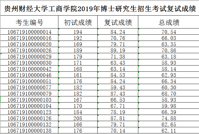 williamhill中文官网工商公司2019年博士研究生招生考试复试成绩